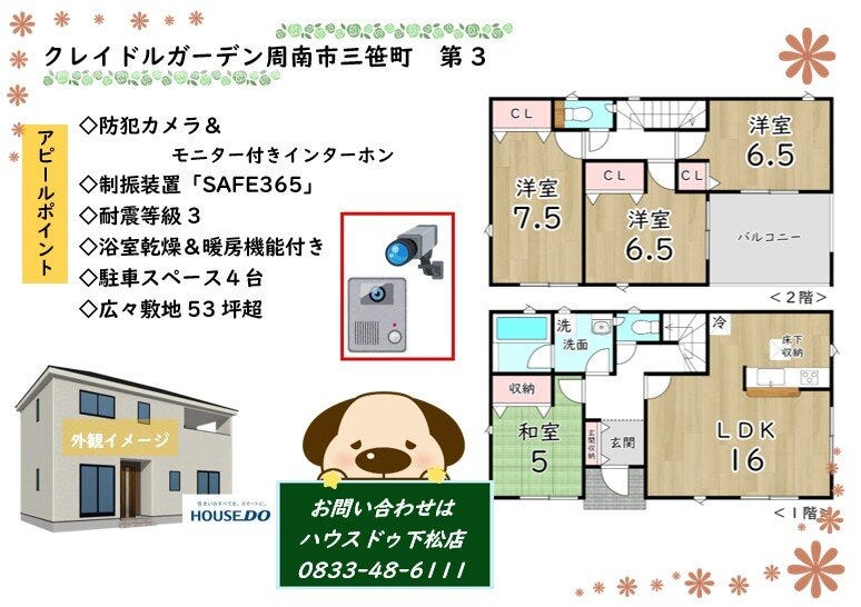 🔶防犯カメラやモニター付きインターホン、人感センサーライト付きでセキュリティ設備も安心ですね