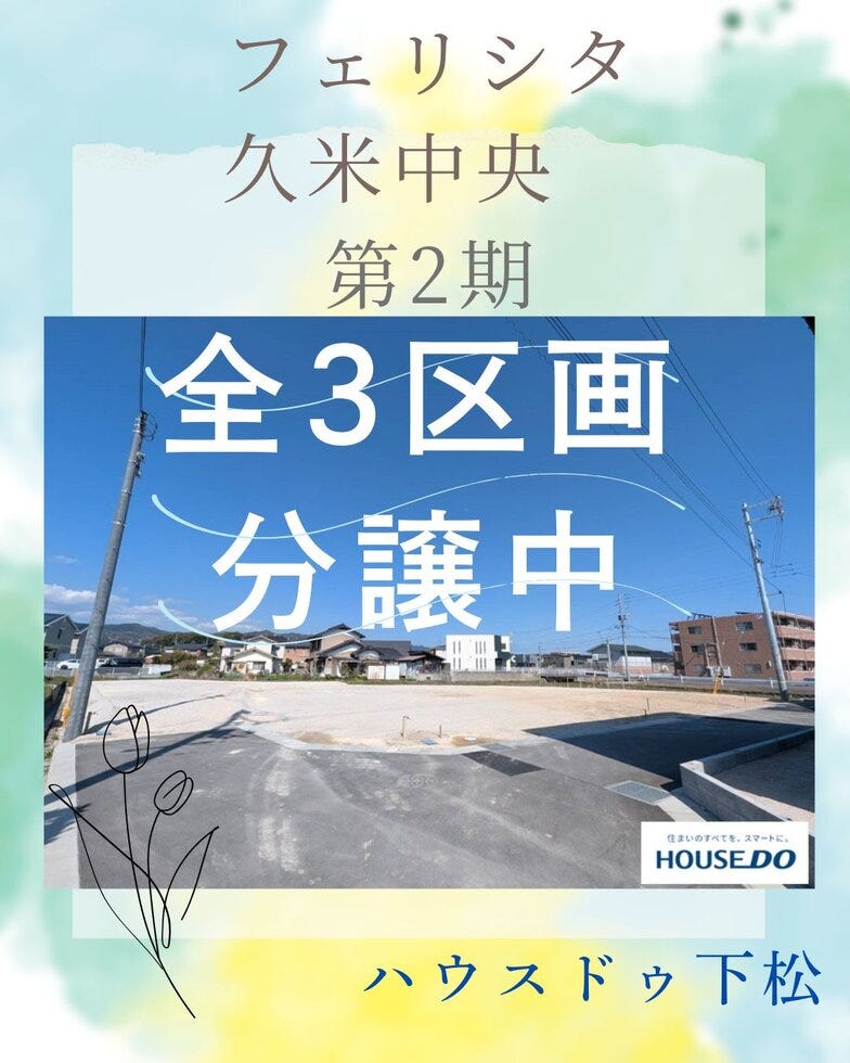 ◇人気の久米中央エリア ◆建築条件のない分譲地 ◇ラスト2区画 ◆現地のご案内可能です フェリシタ久米の物件資料は ↓ 5号地 ・ 6号...