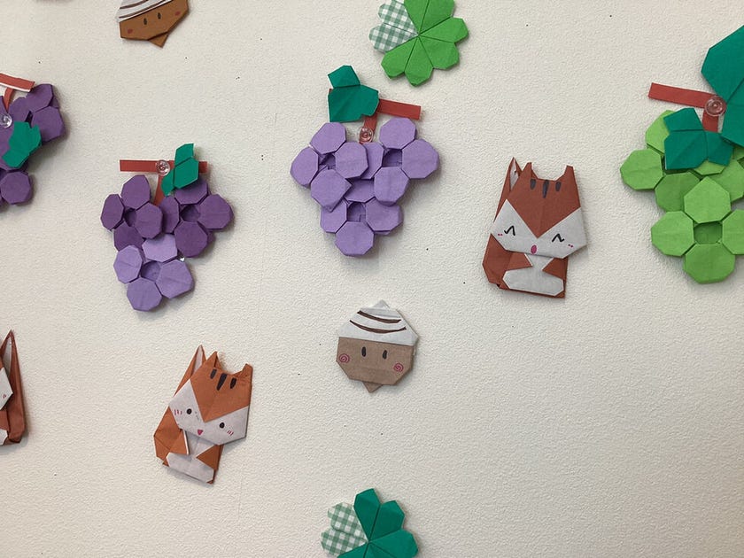 金魚の折り紙が飾ってあります