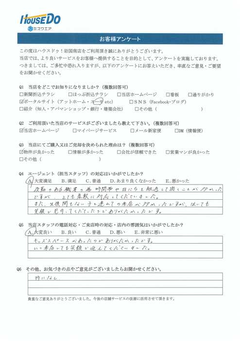 【エージェント(担当スタッフ)の対応はいかがでしたか?】